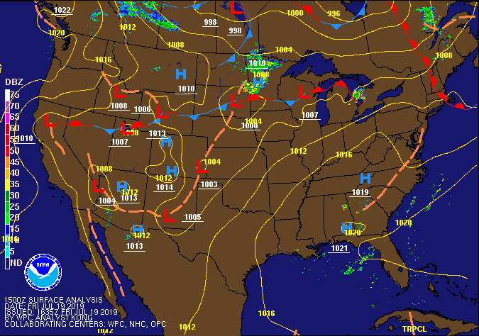 | Figure 1. NOAA NWS surface analysis for July 19, 2019. |