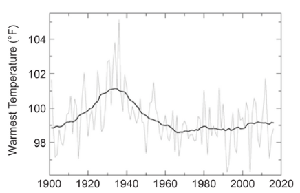 | Figure 6. Average warmest temperature each year. – U.S. Fourth National Climate Assessment. |